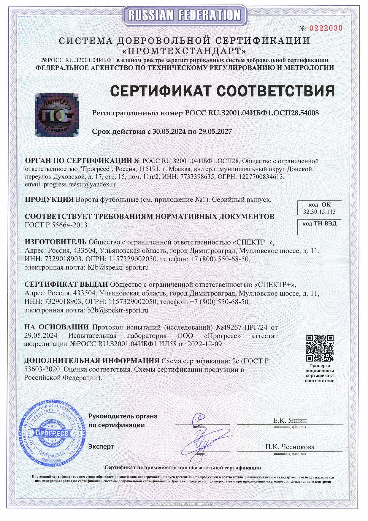Сертификат соответствия (тренажёры, покрытия)